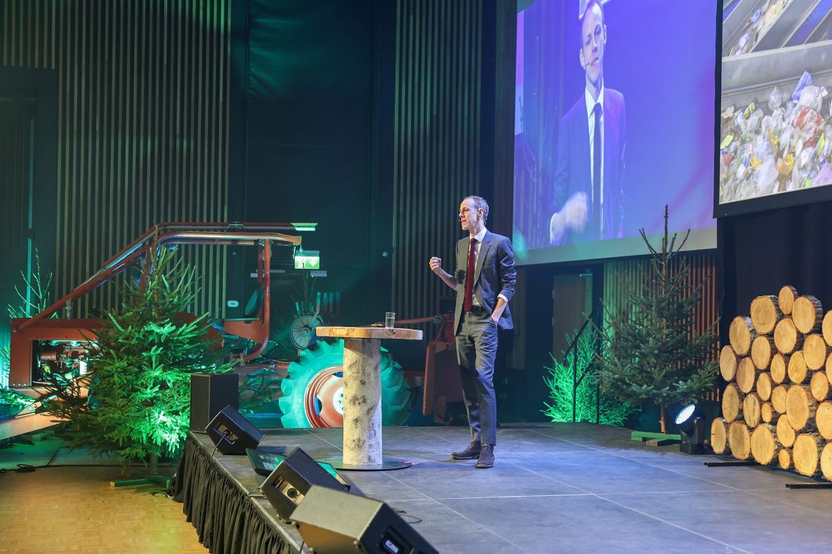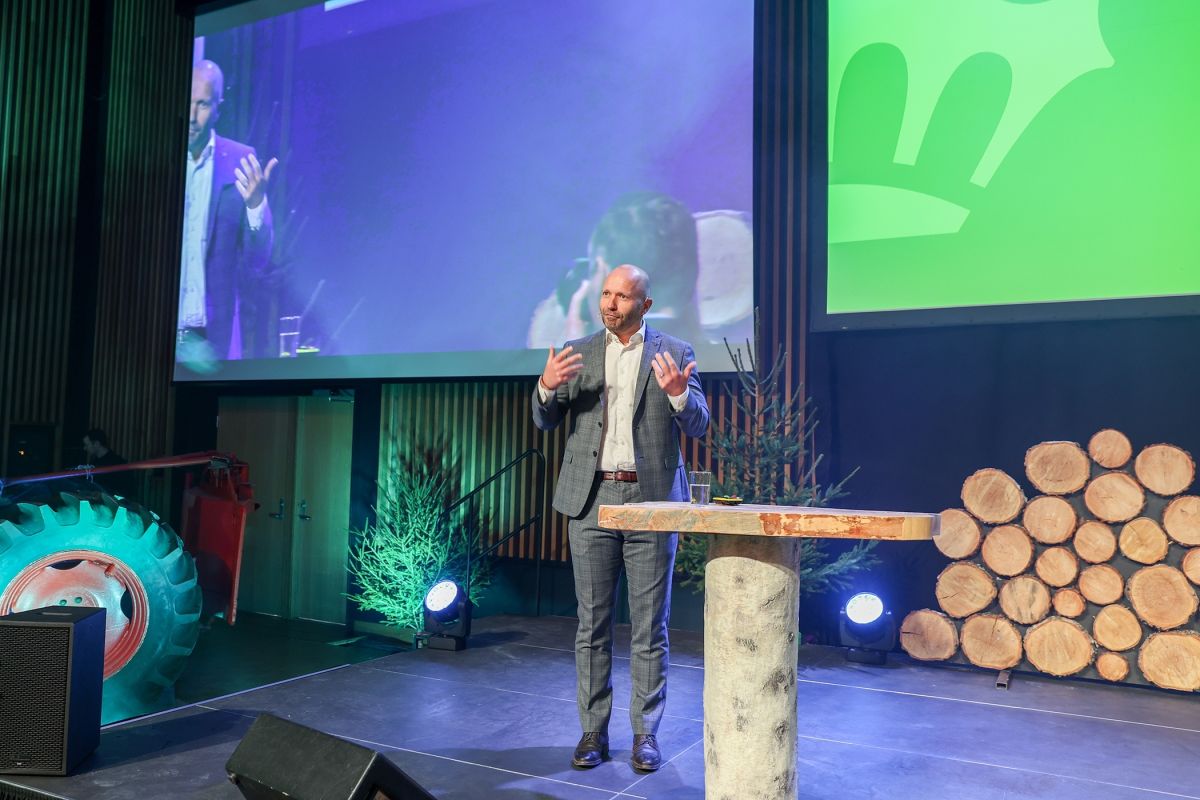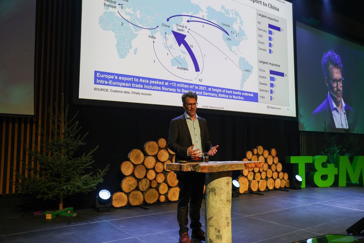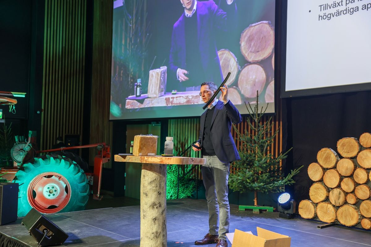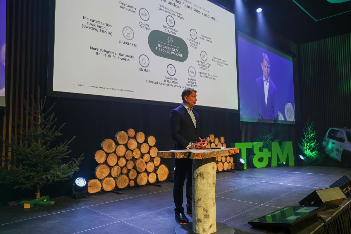 STOR ETTERSPØRSEL ETTER TØMMER: Per-Ove Nordström, sjef for AFRY Management Consulting Bioindustri, kom i sitt innlegg inn på balansen mellom etterspørsel etter tømmer og muligheten til å avvirke like mye eller mer enn man gjør i Norden i dag.