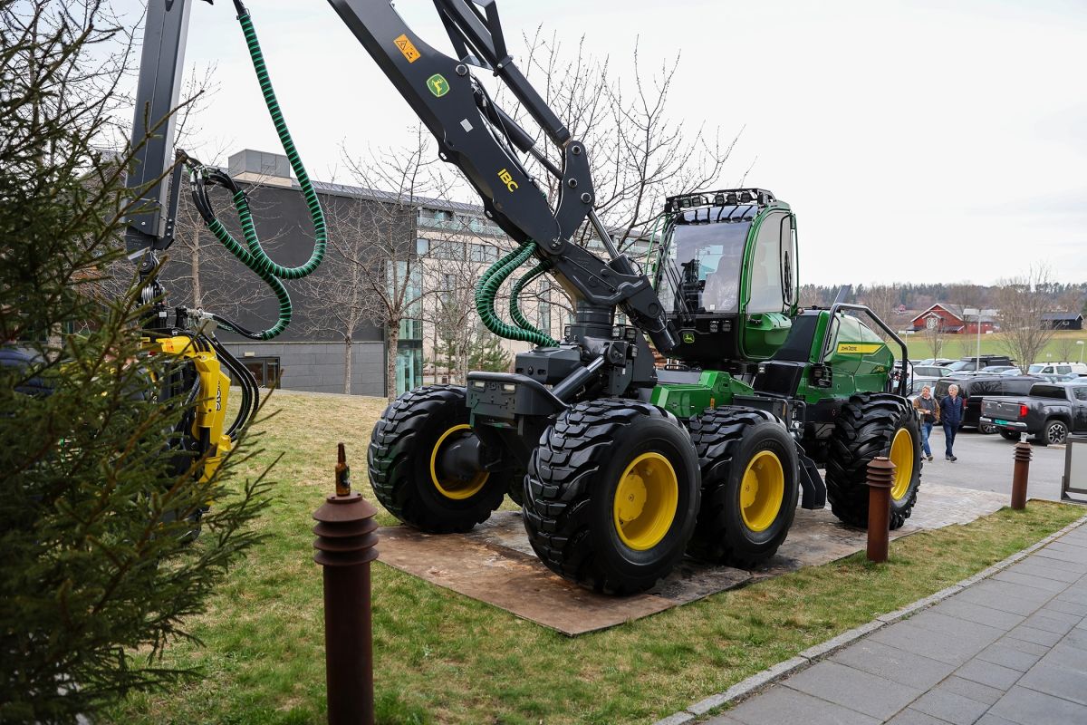 NY MASKIN: Sponsoren John Deere Forestry stilte med en splitter ny 1470H utenfor Sundvolden Hall.