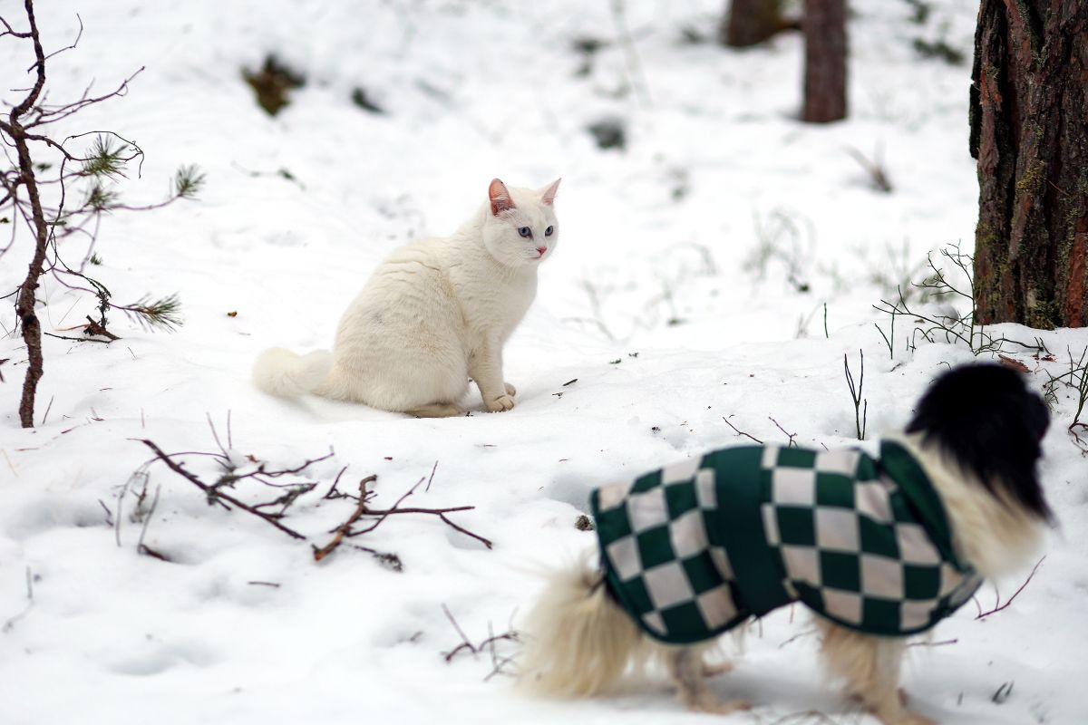 UTE PÅ TUR: Skogen på Vestnebba er mye brukt av folk og dyr som bor i nærheten. Her er to gode venner ute på tur i skogen med eieren sin.