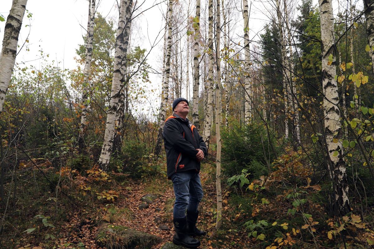 BJØRKESKOG: Alf Harald satser gjerne på blandingsskog. Bjørka har stor verdi og kort omløpstid.