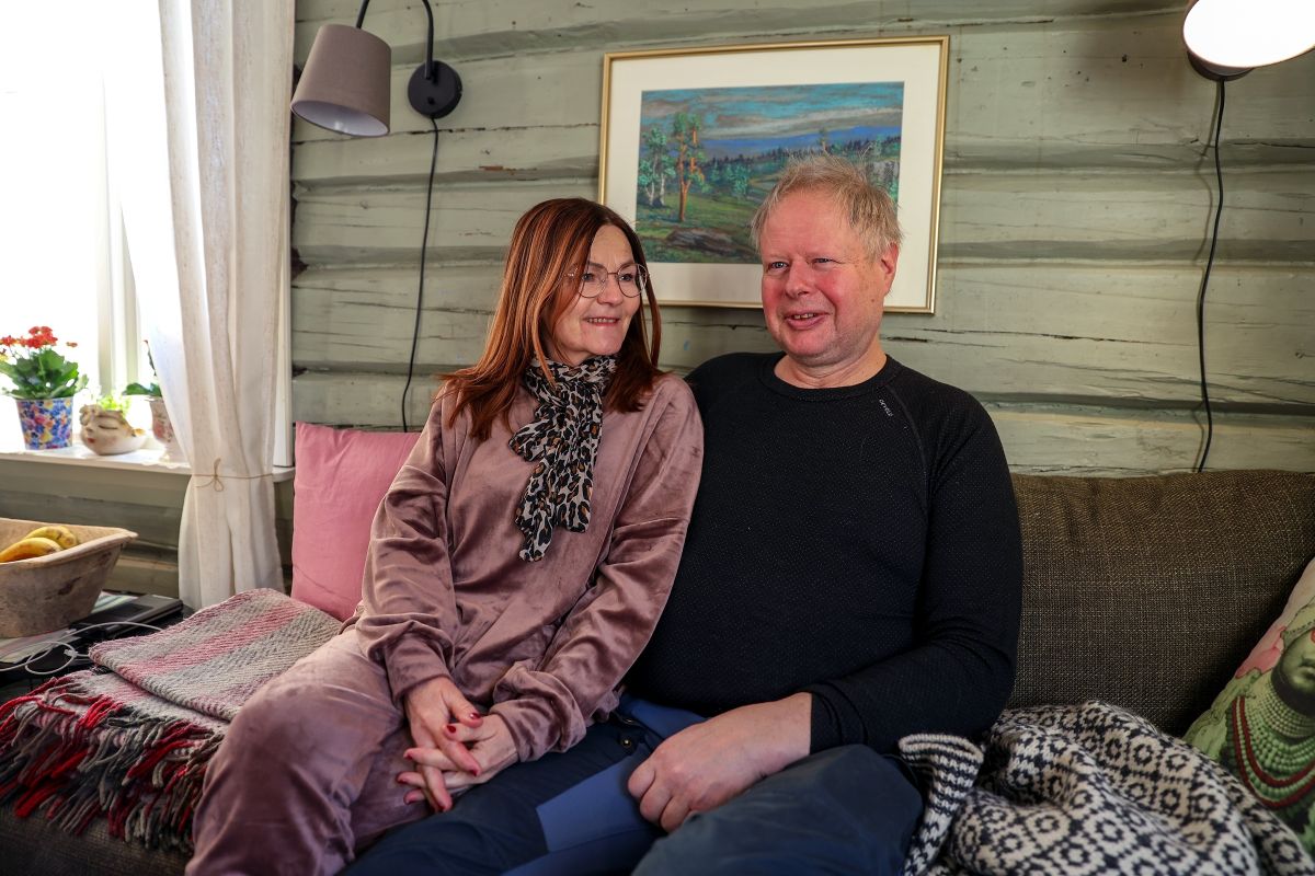 TRIVES PÅ GÅRDEN: Steinar og Solfrid forteller om verneprosessen i stua i det gamle huset.
