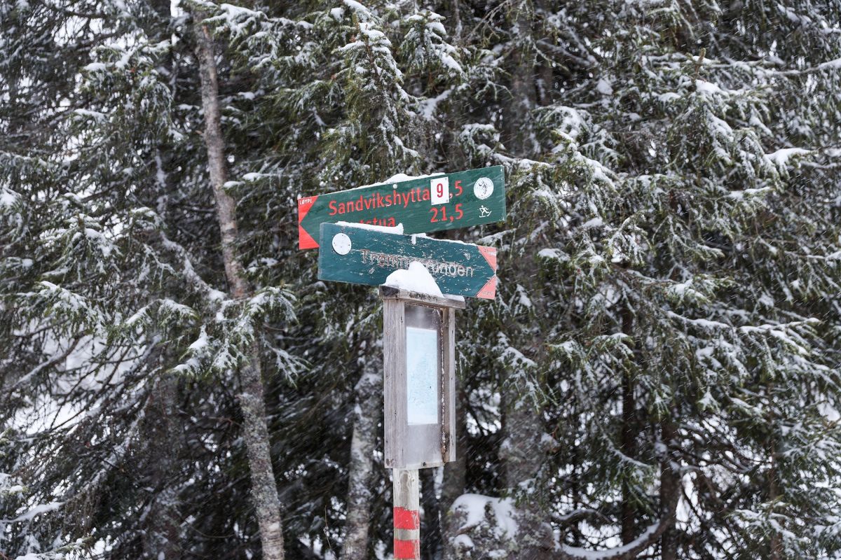 VAMBUKRYSSET: Skisesongen er definitivt i gang, og skiltene gjør det lett å orientere seg i marka.