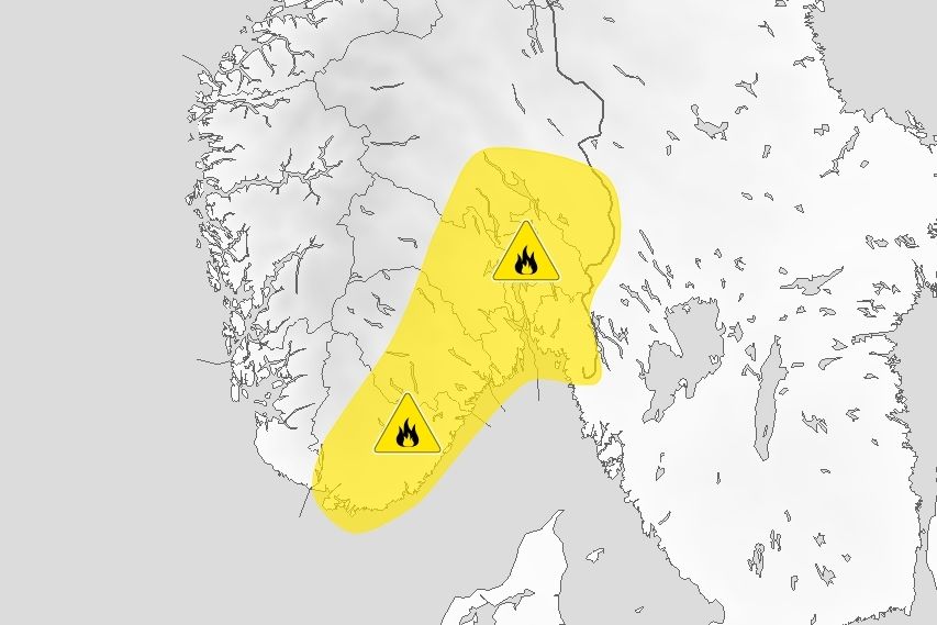 GULT NIVÅ: Det er fare for gress- og lyngbrann i snøfrie områder, meldes det om på Yr.no og Varsom.no.