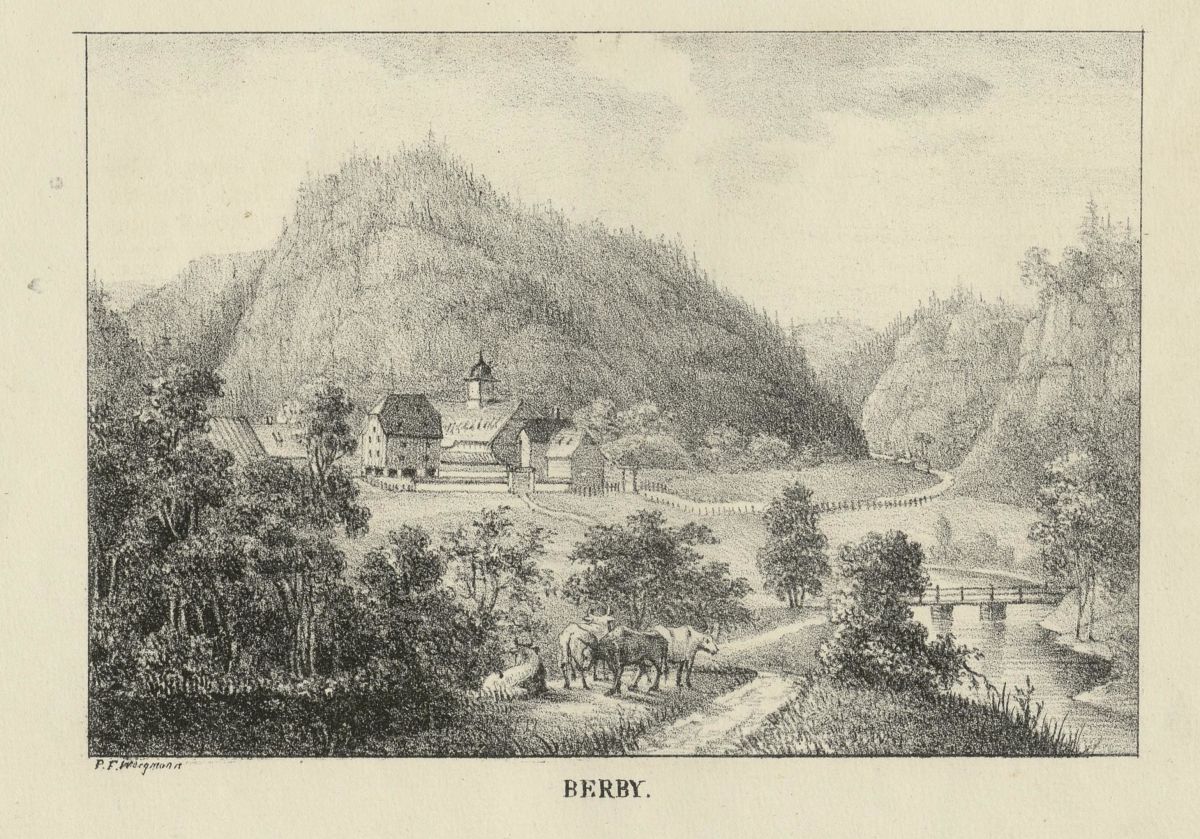 TEGNING AV BERBY: Denne er å finne i boka «Norge, fremstillet i lithographerede Billeder efter Naturen» av Peter Frederik Wergmann, utgitt 1836–1837. Kilde: Nasjonalbiblioteket og Wikipedia