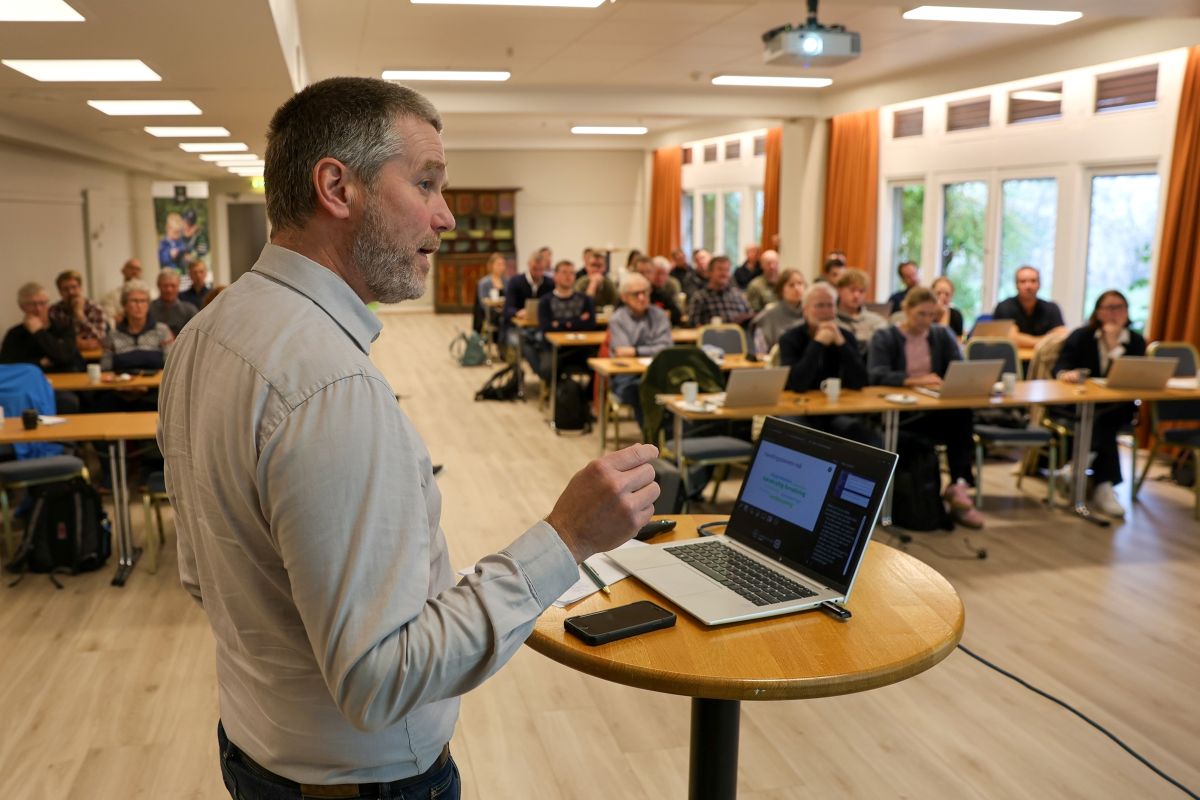 FRA STATSFORVALTEREN: Helge Nordby, seksjonssjef for skogbruk hos Statsforvalteren i Østfold, Buskerud, Oslo og Akershus, på møtet på Klækken hotell.