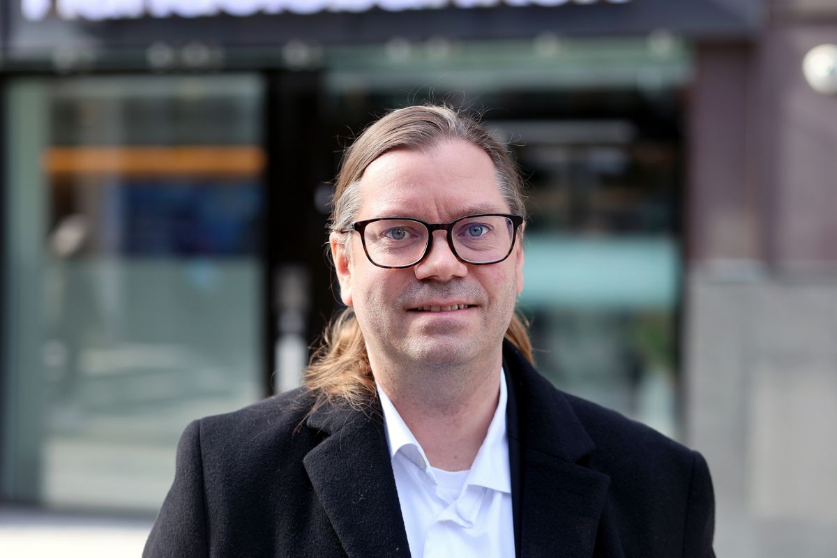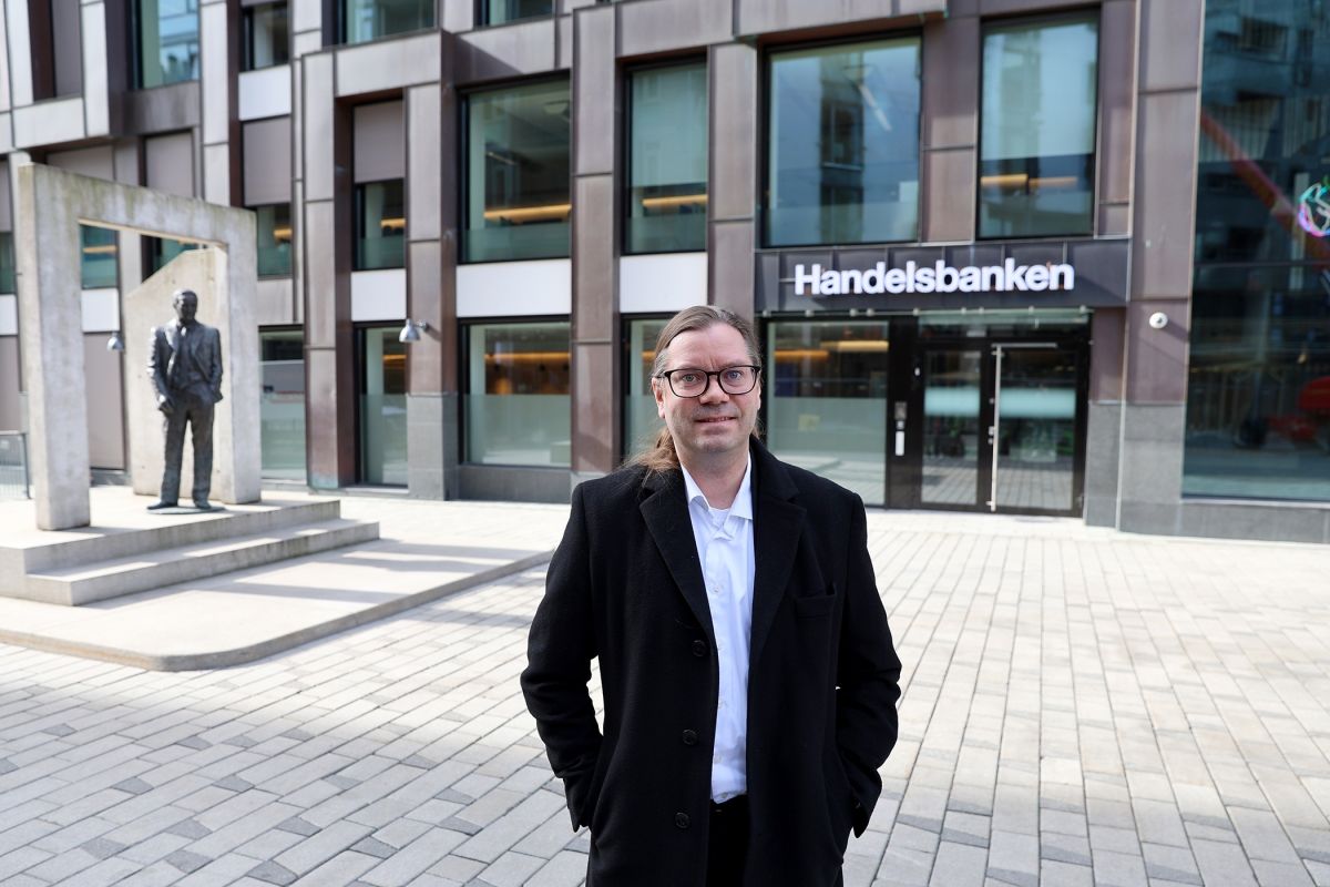 BLANT DE STØRSTE I NORDEN: Marius Gonsholt Hov utenfor Handelsbankens lokaler på Tjuvholmen i Oslo. Den svenskeide Handelsbanken er en av Nordens største banker.
