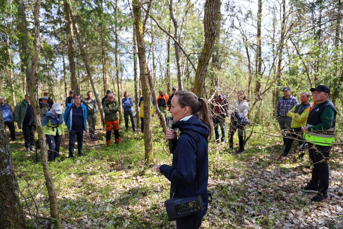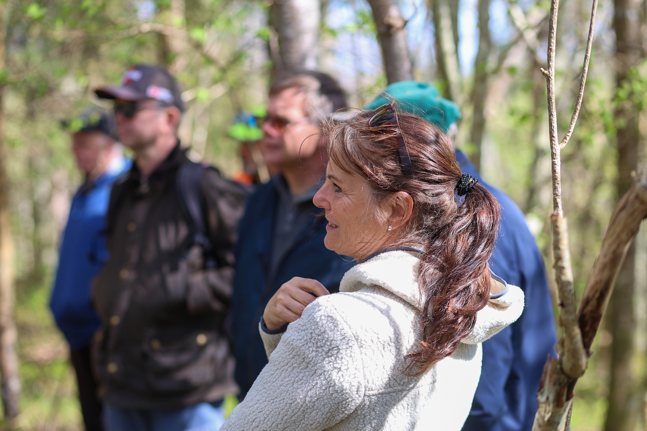 Til slutt var det Ingrid Knotten Haugberg, fagsjef skog og utmark hos Statsforvalteren, som dro folket med seg inn i den skrinne skogen på steinete grunn. Hun innledet til en diskusjon om hva skal vi plante, hvor og hvorfor.