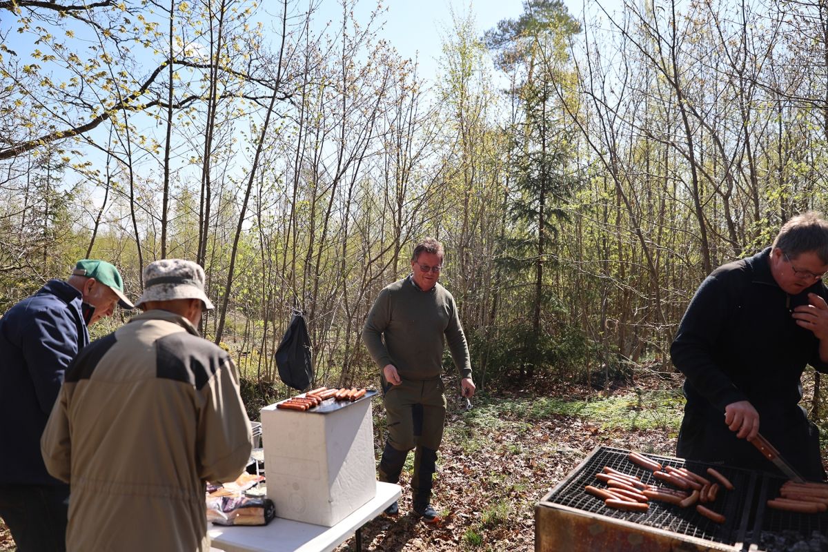 LUNSJ: Etter første bolk ble det servert grillpølser, til glede for store og små. I midten ser vi Arne Petter Christensen, leder i Tønsbergdistriktet skogeierlag.