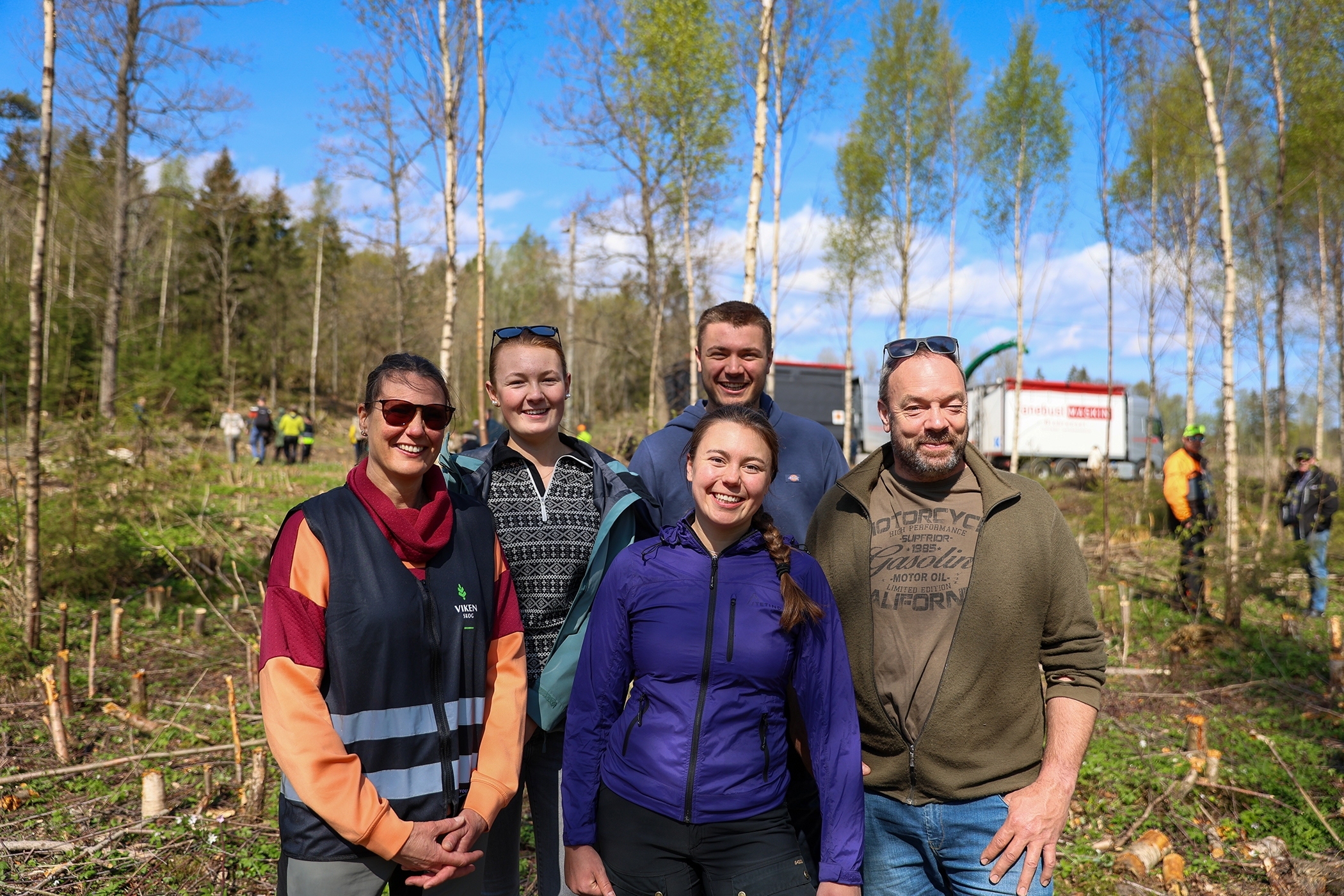 FORNØYD GJENG: Dette bildet ble tatt helt til slutt. Det var flere som deltok, men ikke alle hadde mulighet til å være med til skogdagen var ferdig klokka 15.30.